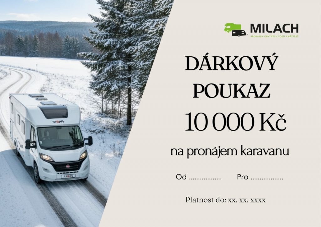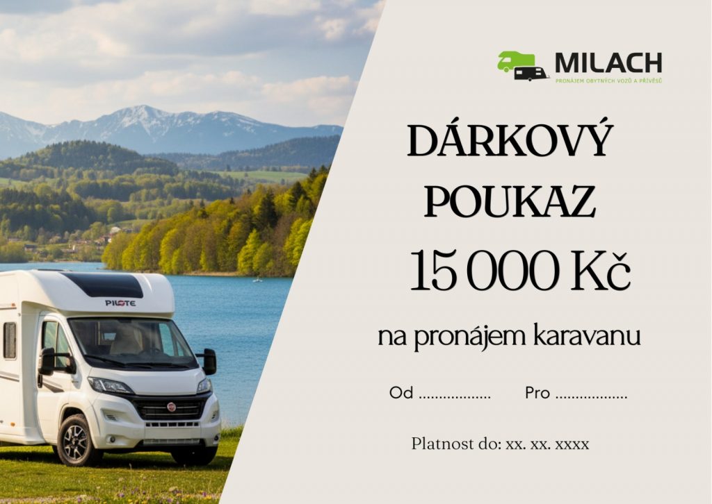 Nečekejte a zakupte si dárkový voucher na pronájem karavanu pro vaše blízké ještě dnes. Užijí si nezapomenutelnou dovolenou plnou zážitků a nových zkušeností!